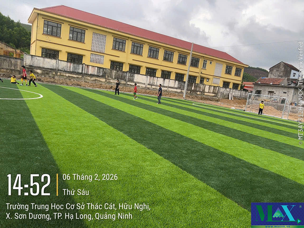 Thi công sân bóng cỏ nhân tạo tại đảo Cái Chiên - Quảng Ninh