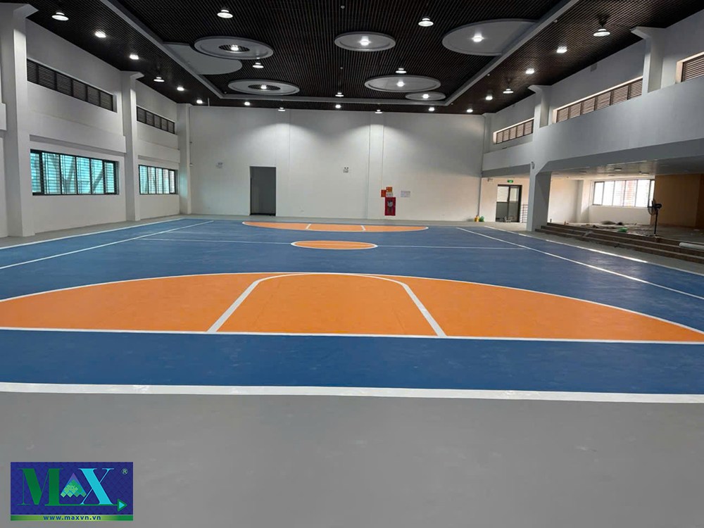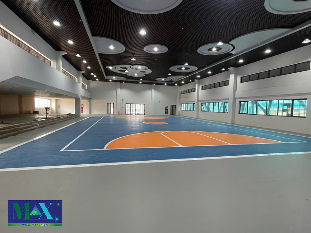 Thi công sân bóng rổ phối màu thảm Vinyl